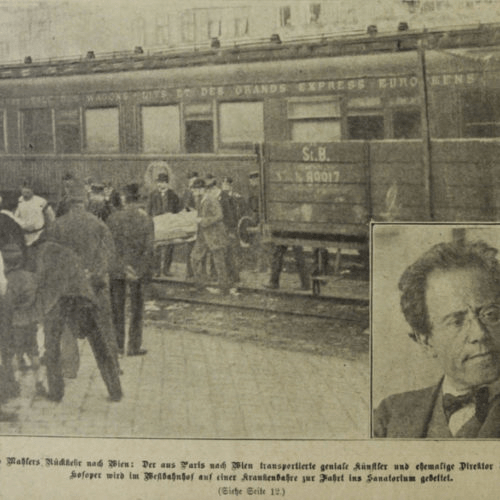Here’s an interesting thing on the subject of Mahler – attached below is the last known picture of Mahler alive, which was only discovered recently (oddly) in a Viennese newspaper. Ermmm – not that you can see much of him, but there he is, being offloaded from the train in Vienna having travelled from New York to die, poor man……