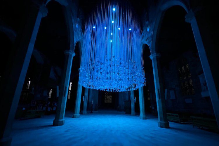 The whole programme represented a series of reflections on peace and the impact of war, and those attending could look, as they listened, at the very impressive “large-scale installation, created by Peter Walker and composer David Harper, which ….features several thousand paper doves suspended above the nave of the Cathedral. Schools across Sheffield and South Yorkshire have contributed, as have community groups, wellbeing groups, and the general public, by decorating the doves that form the artwork with messages of peace, love, and hope – creating a unique piece that reflects the thoughts and feelings of local people from all faiths, ages, and backgrounds.” (Cathedral web site – picture below)