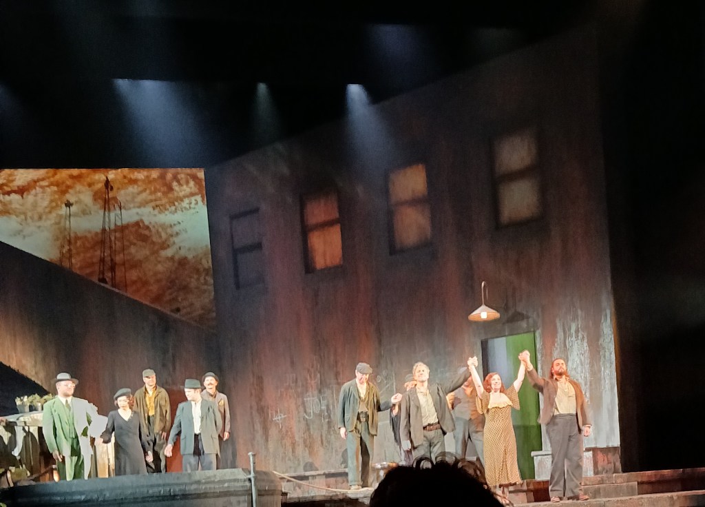 Il Tabarro is the darkest of the three works – in what happens, in the music (generally slow moving but the work suddenly combusts at points with suppressed desire) and in how the set looked – a dark barge, a dimly-lit building nearby and a half-bridge. Natalya Romaniw was superb. She has a full warm voice, and an attractive stage presence – she knows how to handle herself on stage, and she got a great round of applause as a local girl-made-good from the audience.. Michele was sung by Dario Solari who was most impressive – a big sonorous dark baritone, and again good on stage. Luigi was maybe a little underpowered. Smaller parts were well taken with artists of the status of Mark Le Brocq performing.
