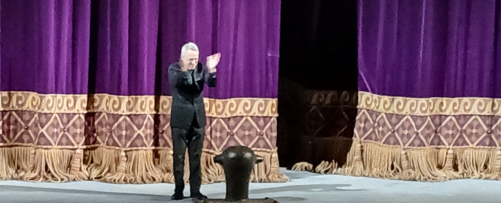This is a very famous – and now elderly – production dating back to the 1980’s, which for whatever reason I have never seen before. Rigoletto has been one of the real rediscoveries for me in recent years, and I continue to find It a gripping work, saying a lot with relatively little means, and it is emotionally moving (at least when with the right singers), despite the familiarities of the tunes and some stock operatic scenes such as the heroine’s death, which can easily seem risible. I suppose in the intervening 40 years of this production we have become very much more used to directors resetting the context of an opera – I do remember when I saw ‘Rigoletto in 70’s it was most definitely set in a Renaissance court and you didn’t really expect it to be anywhere else (as for that matter it still was in 2022- at Covent Garden) and so the central impact of Miller’s staging has long since lost its sense of being a brilliantly clever idea. Nonetheless there are many aspects that are very well done – the production visually remains very appealing and impressive – the club where the ‘Duke’ of the local Mafia and his ‘court’ hang out looks splendidly and vulgarly opulent, the corner bar with the famous juke box is appropriately sleazy, and the windswept tenement blocks of ?New York look suitably gloomy. In the storm, pieces of scrap paper fly across the stage….. However sometimes on stage, after 40 years of revivals, things are perhaps less effective, and stock gestures take over – Gilda clasping her father’s knees imploring him not to take vengeance on the Duke, for instance; the deception of Rigoletto when the gang comes to abduct Gilda as a joke is oddly and ineffectively managed. Occasionally therefore there are moments where suspension of disbelief is not possible. The staging wasn’t helped by a Duke with – how to say? – less than sublime acting skills, who I suppose gave a reasonable impression of a hard-hearted Mafia boss but was not really able to give any insights into some of the subtleties of the character that text and music can provide. On the other hand the interactions between chorus members were handled well and were very effective.