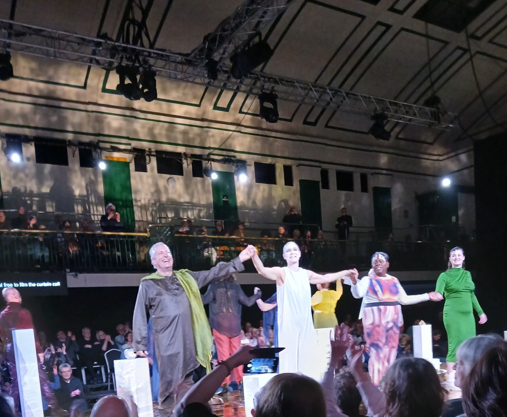 - The sound of the orchestra; obviously an orchestra of 23 or so is not going to sound like an orchestra of 90/100, and everyone understands there are going to be points when things just sound a little odd. And the reduction seemed, to an amateur like me , very clever and thought through – maybe 95% of the time I wasn’t aware of the reduction, and I also heard details sometimes – for instance in the accompaniment to the Rhinemaidens singing at the end – which I have never heard before. But I did wonder about the positioning of the orchestra – from where I sat, stalls right, it sounded distant at times even in the loudest moments. I wondered about whether placing the orchestra more centrally rather than at one end would have helped increase the volume -also whether it should have just subtly been amplified a bit at points, given the glorious sound close up of the voices, which could easily have coped with that..