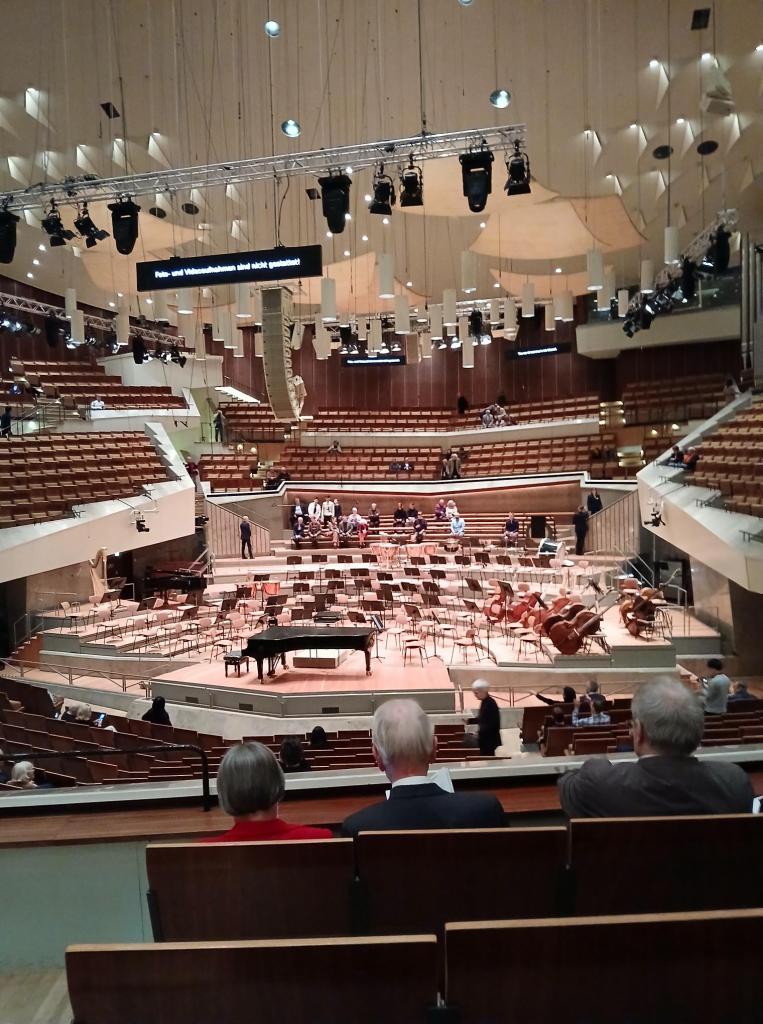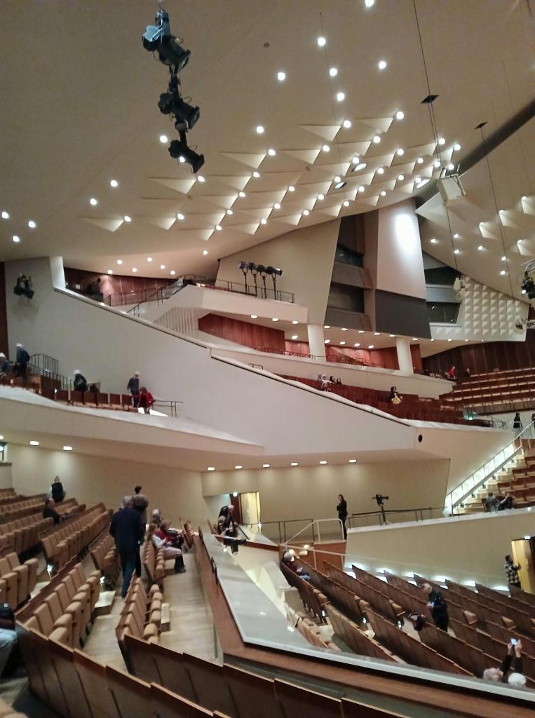 This was my first visit to the Philharmoniie in Berlin, and it’s as spectacular and impressive a building as everyone has always told me it is – imposing, even beautiful, externally, and the different geometric shapes of the interior constantly surprise and delight you. Acoustically it’s magnificent, offering both clarity and warmth, a bright sound but not overbearing.