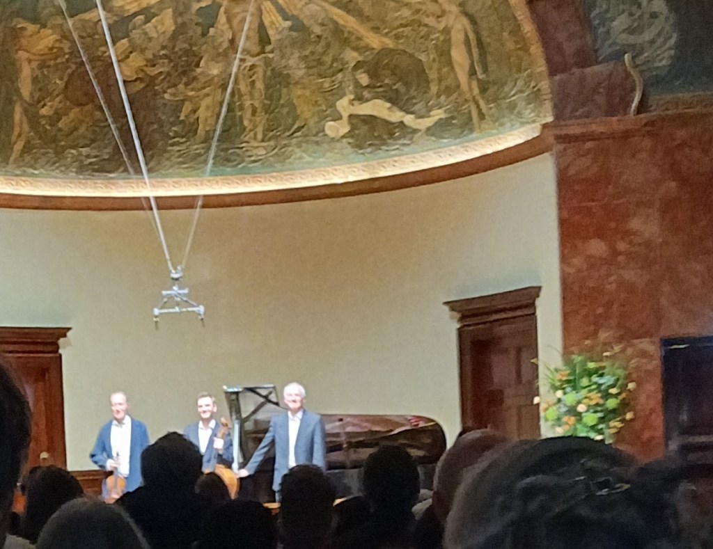 I don’t know to what extent this well-known British violinist and, from my perspective, less well known Serbian pianist and American cellist often perform together, but there was a definite rapport and sense of common understanding between the three players in something of a barn-storming performance of the Tchaikovsky Trio. It’s a work I’ve heard live once before, performed in Sheffield by Ensemble 360 and I was rather bowled over by it at the time, particularly its ‘big tune’ that opens and closes the work, and bought a recording of the work as a result. Listening to it again, I was more conscious that it is a long work – coming up to 50 minutes in this performance – and one which sometimes meanders a bit, particularly in the Theme and Variations section, where there was a sense of ‘”…and next…, and then…….”. Apart from the ‘big tune’’s return, I didn’t get much of a sense of structure in the work – it sprawls, rather. But it’s always appealing, doesn’t seem to go in for noisy rhetorical gestures, the grand moments of the work came off well, and this was a performance of utter conviction and passion, I felt. There were lots of audience whoops and cheers at the end, well-deserved. Was Tchaikovsky really saying what he felt, though, rathe than what he ought to say to the bourgeois salons of St Petersburg and Moscow? I’m not sure……………………