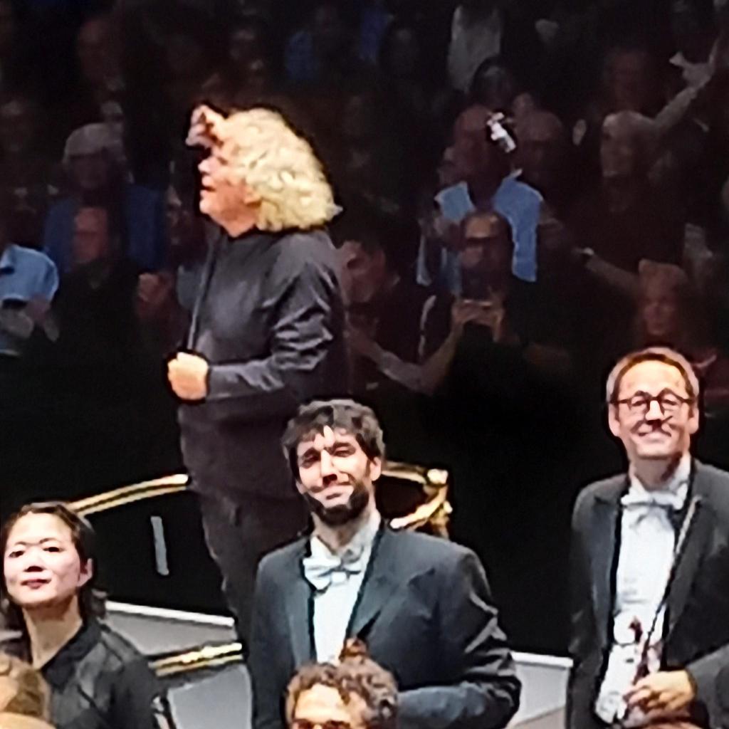Having got my grumbles off my chest, it was fascinating to hear the BRSO so soon after their cousins from Berlin, although inevitably coloured by the fact that i was in the Side Stalls for the Berlin Phil but in the low Choir for the BRSO. I’ve heard the BRSO band only three times before – a couple of Proms in 2019 under Yannick Nezet Seguin, and at the Leipzig Mahler Festival in 2023 when they played Mahler 7 (marvellously) under Daniel Harding. I was struck this evening by the beauty of the string tone, particularly the violas in the Bruckner. Their woodwind is of course excellent without quite the individuality of the BPO; horns are much in the same mode. (The woodwind were superb in their off-the-beat contributions in the Scherzo). Trumpets and trombones from where I was sitting were very resonantly together, perhaps smoother sounding than the BPO (with very similar resources – 3 trumpets, 3 trombones). There were a few orchestral blips with the BRSO which I don’t recall from the two BPO performances.