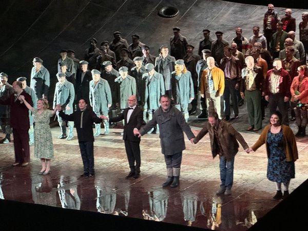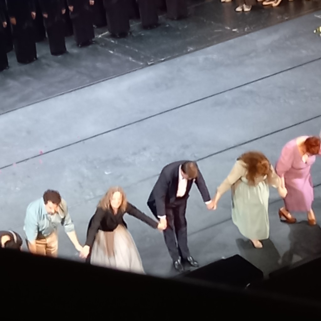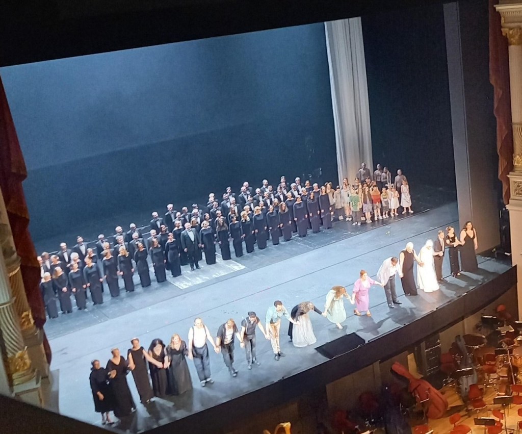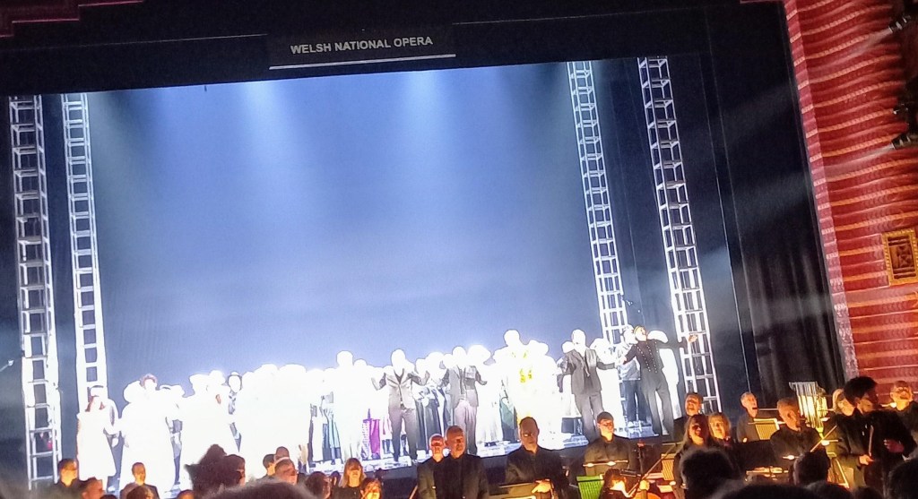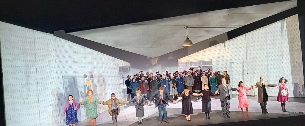 Listening and seeing it again in 2024, I still found it a gripping experience. The one area where things might drag – the ballet sequences, as conventionally presented – were transformed by the collaboration between WNO and the circus company NoFit State. The latter offer a kind of choreographed set of circus acts, focusing not only on the technical ability and spectacle involved in performing extraordinary movements at the end of a rope or in mid-air, but also on the beauty of movements and sequences. The company provided Tadzio and, I think, three/maybe four of his friends/family members, but obviously Tadzio also has to act, as well as look statuesque and beautiful, and be an amazing circus act, and he did this very well in his non-verbal subtle acknowledgement of Aschenbach’s presence on stage.
