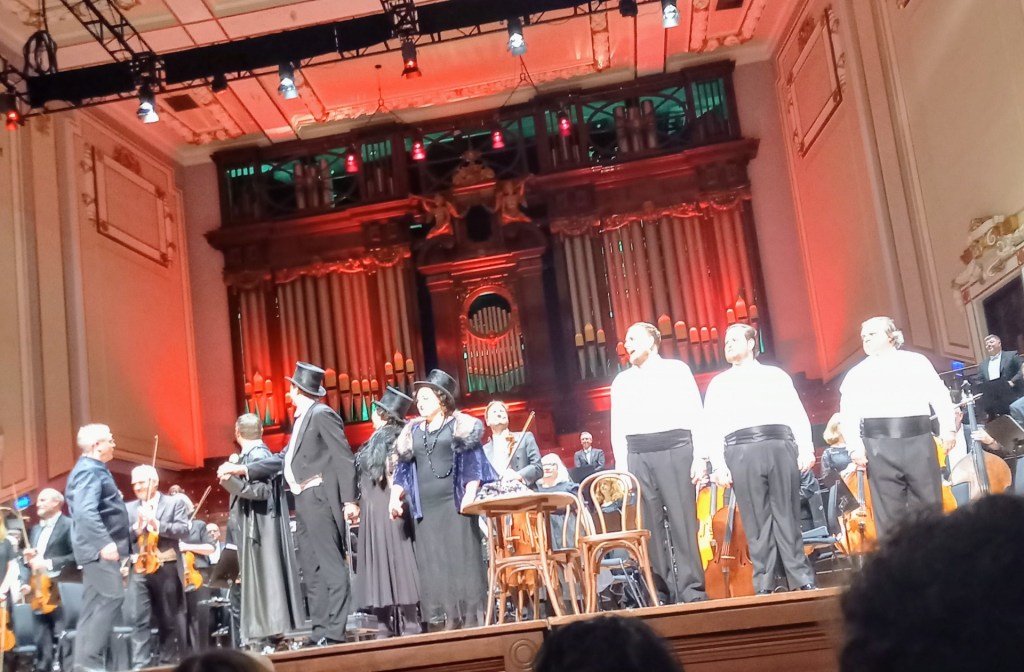 The work has a delightful sequence of Russian folk tunes and quasi folk tunes, together with grand ceremonial processions and dances – it is easy to listen to, as much of Rimsky’s orchestral music is. The problem is that the opera is – in this production, anyway – very bland and hopelessly ‘operatic’ in all the bad ways opera can be: characters who aren’t fully delineated, constant emoting that seems superficial, and a story that isn’t relatable to by a modern audience, and quite long for its subject matter (the first half was Wagnerian in length – nearly 2 hours). Quite how a director might create something more engaging I’m not quite sure. At one end you could perhaps envisage a ‘magical’ production with a lavish set and lots of theatrical tricks; at the other some sort of modern setting – a domestic drama, possibly of the Soviet era (Stalin as Tsar?). One thing which was good here was the translation (the work was sung in English), which had no infelicities and well aligned to the music.